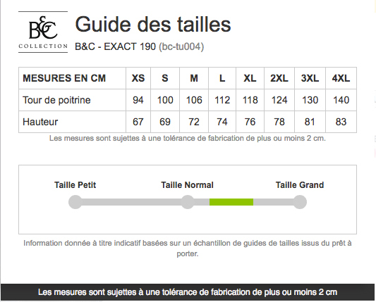 Pour les tailles, vouspouvez consulter le petit guide ci-dessous.